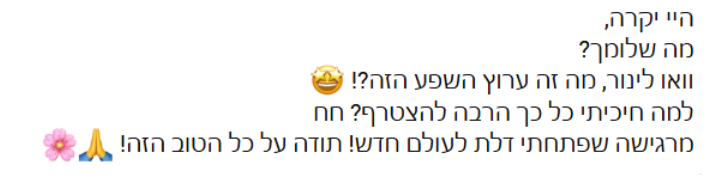 לייב אחד בשבוע + גישה להכל בהקלטות זה מה שצריך+מקום לשאול בו שאלות קטנות שתוקעות רגעית ויחסכו לך זמן. הכל תלוי בך – את עובדת בקצב ובזמן שלך