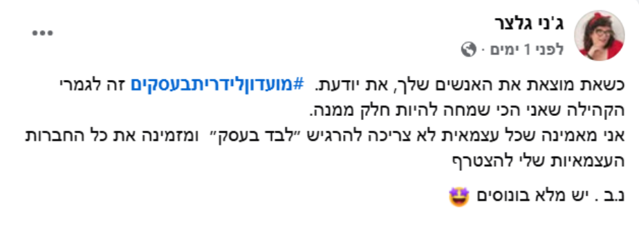 ותקבלי תמיכה מנטלית ועסקית איתי או עם מנחה מובילה,